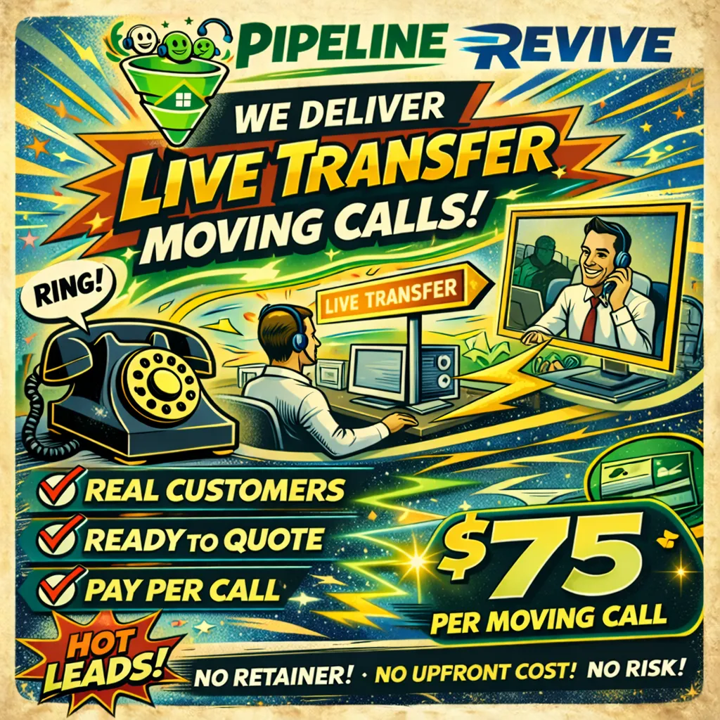 Pipeline Revive helps moving brokers generate fresh live transfer calls and recover revenue from recent unclosed leads.